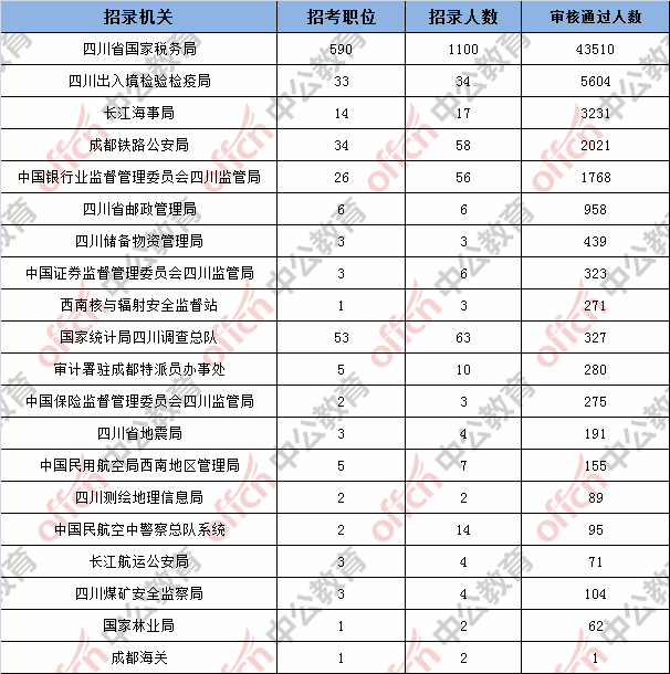 為幫助廣大考生更清晰的了解今日報名情況,中公網(wǎng)校整理了已審核通過人數(shù)的部門,此數(shù)據(jù)供廣大考生參考: