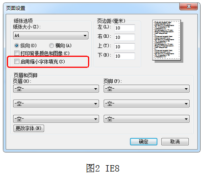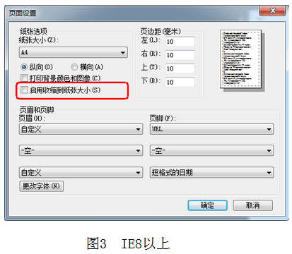 1、使用IE瀏覽器打印時(shí),請(qǐng)首先進(jìn)入瀏覽器菜單【文件】-【頁面設(shè)置】(圖1),將 “啟用縮小字體填充”(IE8,圖2)或“啟用收縮到紙張大小”(IE8以上,圖3)勾選項(xiàng)去掉后,點(diǎn)擊確定,然后再打印報(bào)名表或準(zhǔn)考證;