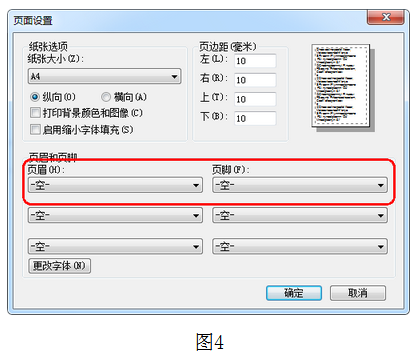 2、當(dāng)無打印環(huán)境時(shí),考生可選擇【另存為網(wǎng)頁】,將保存的文件(類型:html)拷貝到連接有打印機(jī)的電腦上,用瀏覽器打開此文件并打印。請(qǐng)?jiān)诖蛴r(shí)確認(rèn)瀏覽器設(shè)置中去掉頁眉、頁腳(圖4)。