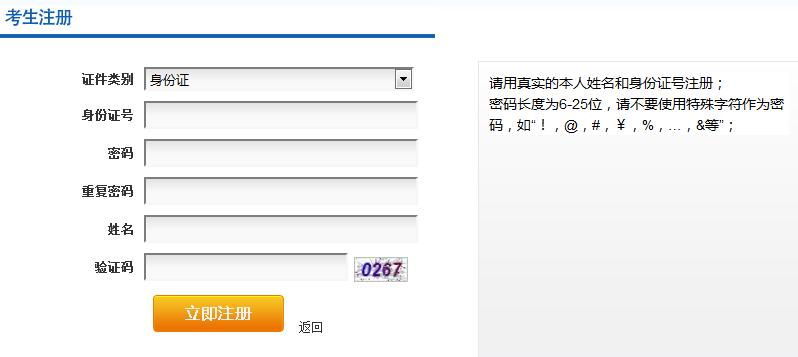填寫注冊(cè)信息,包括“身份證號(hào)”、“密碼”、“重復(fù)密碼”、“姓名”、“驗(yàn)證碼”,點(diǎn)擊“立即注冊(cè)”。