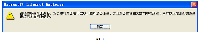 資格審核通過后,即可點擊‘網(wǎng)上繳費(fèi)’進(jìn)行繳費(fèi)操作,如果審核沒通過就會有圖6-1的提示。