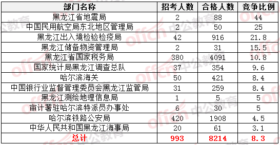 截至20日8時,競爭比例前三位的部門依次是:黑龍江省地震局、中國民用航空局東北地區(qū)管理局、黑龍江出入境檢驗檢疫局。