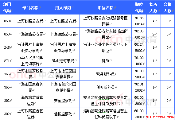 截至20日16時(shí),工作崗位在上海地區(qū)共有13個(gè)職位無(wú)人報(bào)考,占全部職位的5.6%。下面是無(wú)人報(bào)考職位一覽表,中公教育專家建議廣大考生多關(guān)注一些競(jìng)爭(zhēng)激烈性小的職位,避免激烈競(jìng)爭(zhēng),結(jié)合自身?xiàng)l件,找到屬于自己的職位。