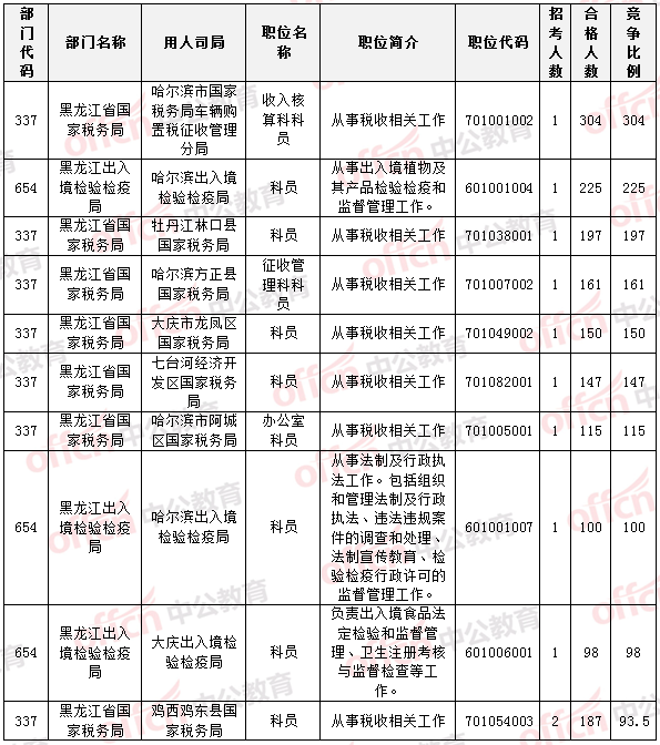 截至20日16時(shí),招錄比例的職位為黑龍江省國(guó)家稅務(wù)局哈爾濱市國(guó)家稅務(wù)局車輛購(gòu)置稅征收管理分局收入核算科科員一職,招錄1人,審核通過人數(shù)已經(jīng)達(dá)到304人,具體信息如下: