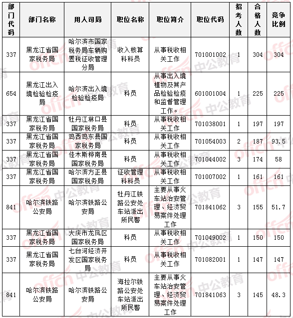 報(bào)名競(jìng)爭(zhēng)最激烈的前十的職位