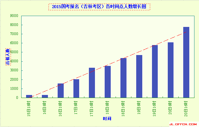 2015吉林國(guó)考報(bào)名各時(shí)間點(diǎn)人數(shù)增長(zhǎng)情況