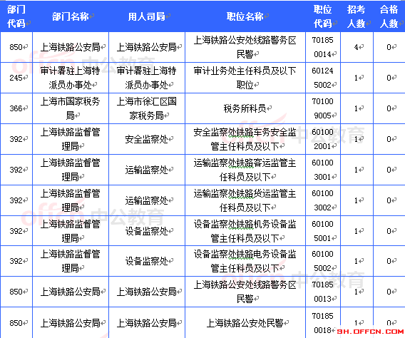 截至21日16時(shí),工作崗位在上海地區(qū)共有10個(gè)職位無人報(bào)考,占全部職位的4.31%。下面是無人報(bào)考職位一覽表,中公教育專家建議廣大考生多關(guān)注一些競(jìng)爭(zhēng)激烈性小的職位,避免激烈競(jìng)爭(zhēng),結(jié)合自身?xiàng)l件,找到屬于自己的職位。