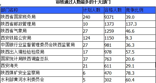 截至23日8時(shí),通過(guò)審核人數(shù)前三位的部門依次是:陜西省國(guó)家稅務(wù)局、陜西省郵政管理局、陜西省氣象局,三部門通過(guò)審核總?cè)藬?shù)達(dá)12003人,占通過(guò)審核總?cè)藬?shù)的67%。
