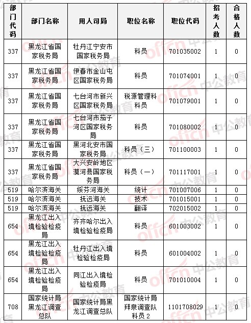 [截至23日8時]2015國考報名【黑龍江】零審核職位匯總