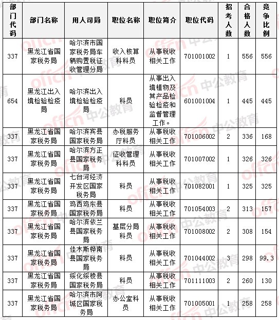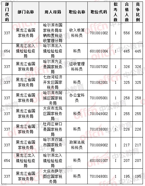 截至24日8時,招錄比例的職位為黑龍江省國家稅務(wù)局哈爾濱市國家稅務(wù)局車輛購置稅征收管理分局收入核算科科員一職,招錄1人,審核通過人數(shù)已經(jīng)達(dá)到556人,連續(xù)多日霸占首位,具體信息如下: