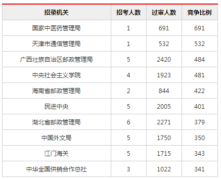 2019國(guó)考報(bào)名過(guò)審人數(shù)競(jìng)爭(zhēng)最激烈前十職位