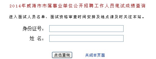 2014山東威海市屬事業(yè)單位招聘筆試成績(jī)查詢?nèi)肟?/span>