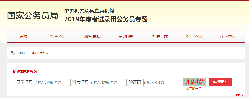2019國(guó)家公務(wù)員成績(jī)查詢?nèi)肟?/span>已于2019年1月17日晚開通,2019國(guó)家公務(wù)員考試成績(jī)查詢時(shí)間為2019年1月17日起。請(qǐng)廣大考生關(guān)注中公教育國(guó)考頻道,以及時(shí)獲取2019國(guó)家公務(wù)員成績(jī)查詢、國(guó)考錄取分?jǐn)?shù)線、國(guó)考面試名單、面試公告、面試時(shí)間等信息!