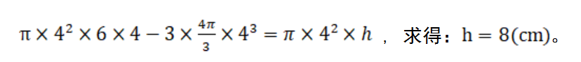 半徑為4cm的圓柱形容器內(nèi)盛了一部分水。將三個半徑為4cm的小球依次放入后,水面恰好淹沒最上面的小球(水無溢出)。則小球放入之前,容器中水面高度為: