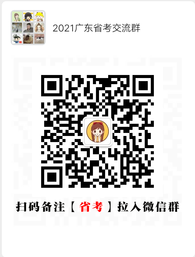 2021廣東省考公告發(fā)布!報名時間:2月1-7日,筆試時間:3月14日。備考3部曲:一聽,省考公告解讀峰會,二加,小伙伴交流群,三領(lǐng)取,筆試資料資料。
