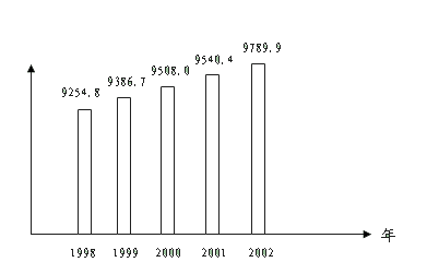 1998~2002年各年年底某市人口數(shù)示意圖(單位:千人)