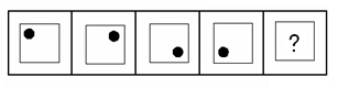 (答案:B。黑點(diǎn)在正方形中順時(shí)針移動(dòng)。在第5個(gè)圖形中,應(yīng)該正好移動(dòng)到左上角。)