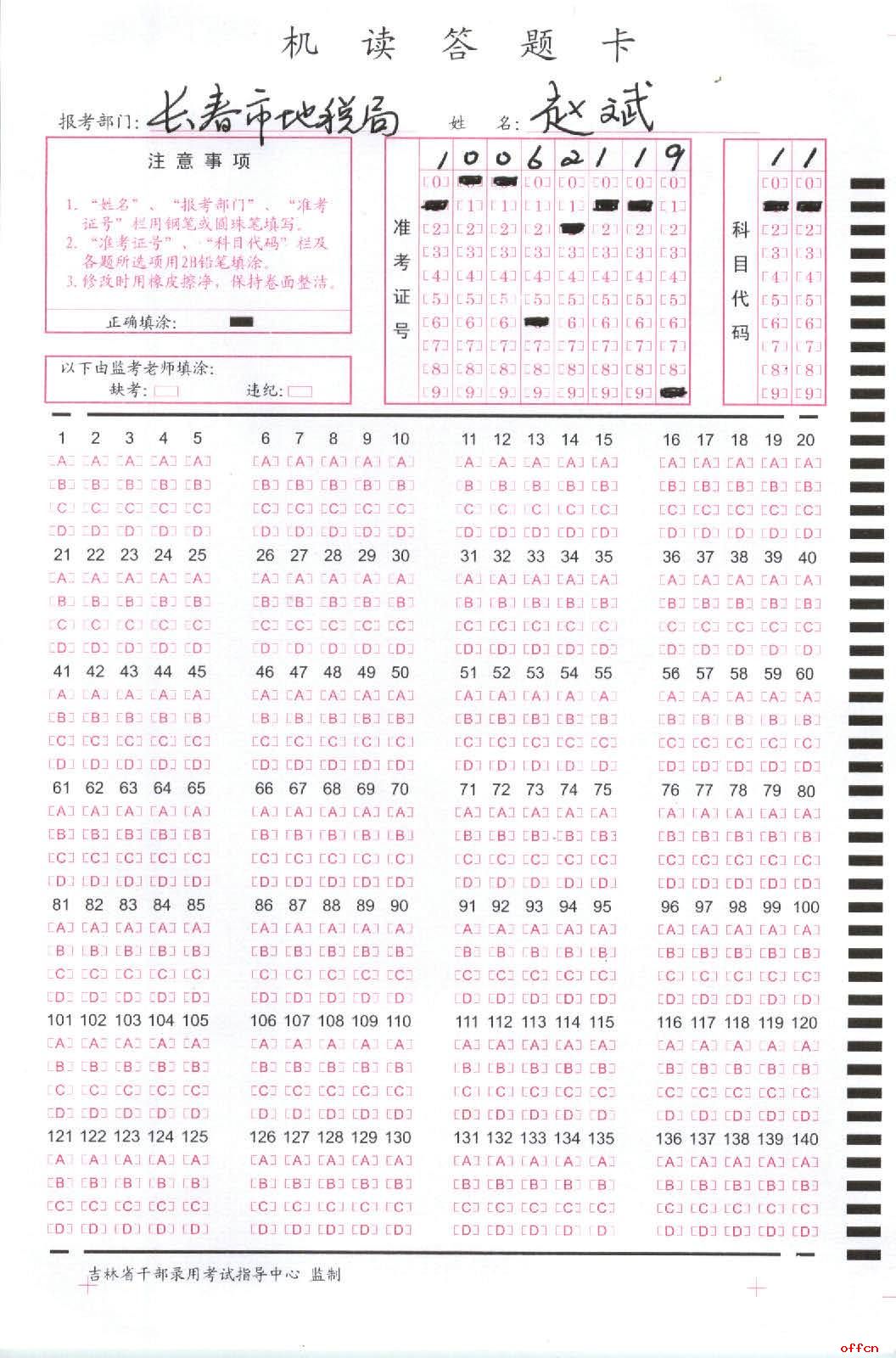 附:行政職業(yè)能力測(cè)驗(yàn)答題卡樣例