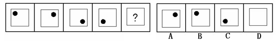 (答案:B。黑點在正方形中順時針移動。在第5個圖形中,應該正好移動到左上角。)