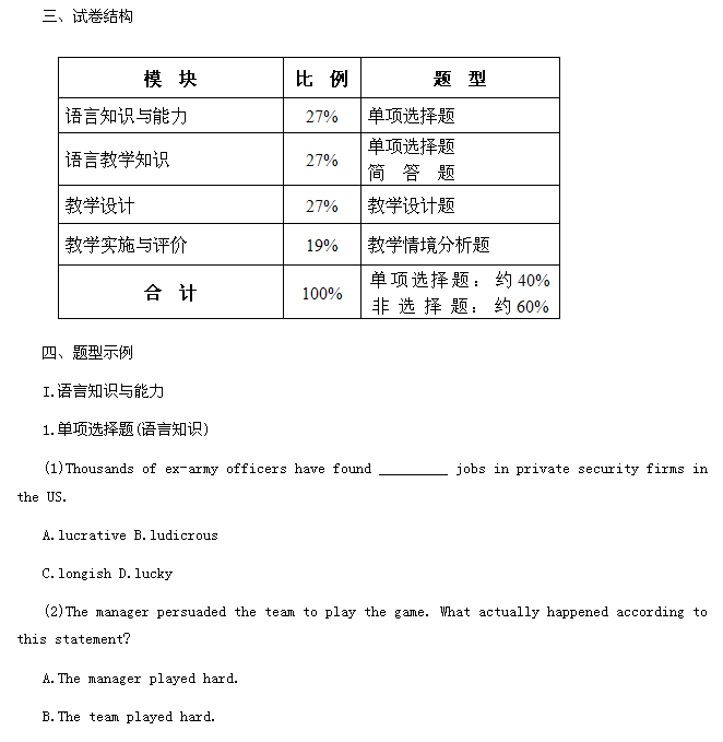 《英語學科知識與教學能力》(高級中學)筆試大綱