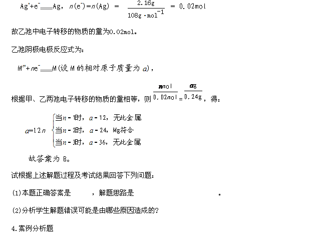 [試題] 甲、乙兩個電解池均以Pt為電極,且互相串聯(lián),甲池盛有AgNO3溶液,乙池盛有一定量的某鹽溶液。通電一段時間后,測得甲池中陰極質量增加2.16g,乙池中電極上析出0.24g金屬,則乙池中溶質可能是( )
