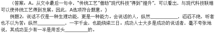 例題1:在古代,每遇戰(zhàn)亂,手藝人都會成為戰(zhàn)爭雙方爭奪的對象,這是因為手藝人掌握著傳統(tǒng)社會中最重要的技術(shù),他們代表著當(dāng)時的社會生產(chǎn)力。如 今,盡管現(xiàn)代科學(xué)技術(shù)取代了手工技能,成為當(dāng)今時代最強大的生產(chǎn)力,但傳統(tǒng)工藝完全可以借助現(xiàn)代科技而,繼續(xù)服務(wù)于大眾。