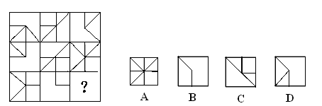 第一種題型:圖形推理。每道題給出一套或兩套圖形,要求報考者認(rèn)真觀察找出圖形排列的規(guī)律,選出符合規(guī)律的一項。