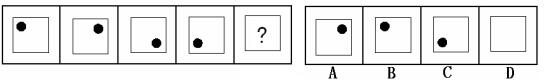 (答案:B。黑點在正方形中順時針移動。在第5個圖形中,應(yīng)該正好移動到左上角。)