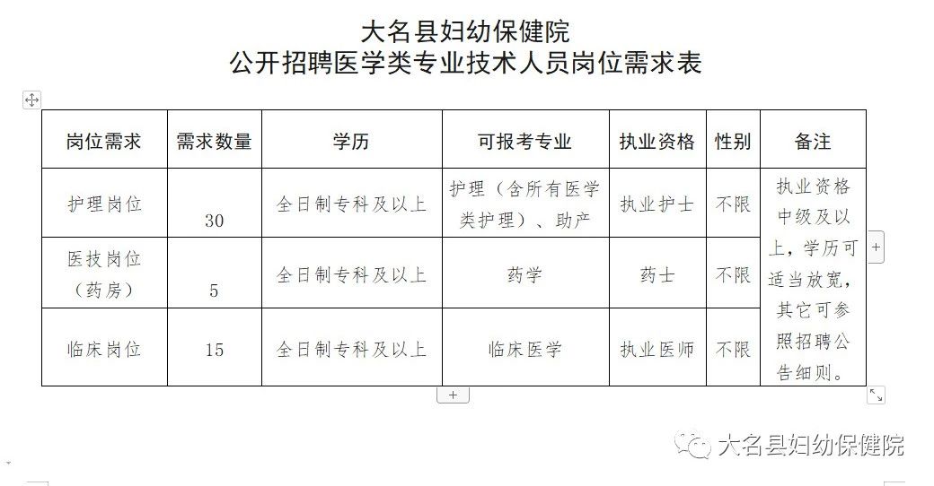 原文標(biāo)題:【招聘公告】大名縣婦幼保健院公開(kāi)招聘醫(yī)學(xué)類(lèi)專(zhuān)業(yè)技術(shù)人員公告