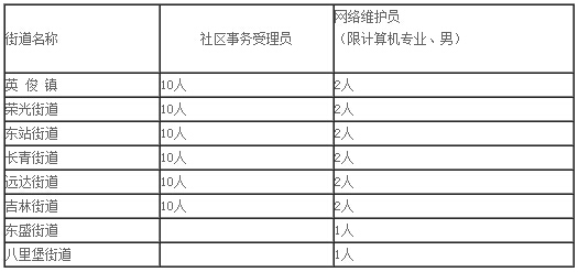 為進(jìn)一步推進(jìn)二道區(qū)社區(qū)公共服務(wù)綜合信息平臺試點(diǎn)建設(shè),現(xiàn)面向社會公開招聘社區(qū)事務(wù)受理服務(wù)中心工作者,現(xiàn)將有關(guān)事項(xiàng)公告如下: