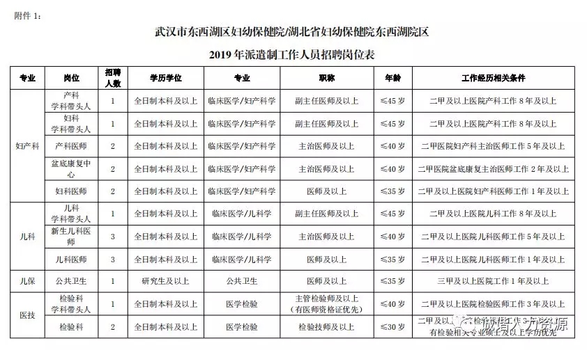 1、武漢市東西湖區(qū)婦幼保健院/湖北省婦幼保健院東西湖院區(qū)2019年派遣制工作人員招聘崗位表