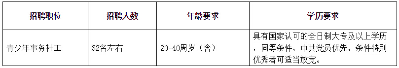 根據(jù)加強(qiáng)青少年事務(wù)社會(huì)工作專業(yè)人才隊(duì)伍建設(shè),服務(wù)青少年健康成長(zhǎng),發(fā)展青少年社會(huì)事業(yè)工作需要,按照“公開(kāi)、公平、公正”和“競(jìng)爭(zhēng)擇優(yōu)”的原則,在共青團(tuán)上海市嘉定區(qū)委員會(huì)的指導(dǎo)下,上海市嘉園社區(qū)青少年事務(wù)中心面向社會(huì)公開(kāi)招聘社會(huì)工作者(簡(jiǎn)稱“社工”),現(xiàn)將招聘啟事公布如下: