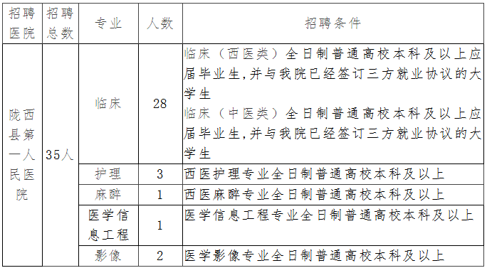 1、具有中華人民共和國國籍。2、擁護中華人民共和國憲法,擁護中國共產(chǎn)黨領導和社會主義制度。3、具有良好的政治素質(zhì)和道德水平。4、具有正常履行崗位職責的身體條件和心理素質(zhì)。5、具備全日制普通高等學校本科及以上學歷,(報考臨床醫(yī)學專業(yè)的必須是應屆畢業(yè)生,并與我院已經(jīng)簽訂三方就業(yè)協(xié)議的大學生)。應屆畢業(yè)生必須7月30日前拿到畢業(yè)證書和學位證書。6、年齡在18周歲以上、35周歲以下(1985年4月15日至2002年4月15日期間出生);7、熱愛醫(yī)療衛(wèi)生事業(yè),具備報考崗位所需的資格條件,具有招聘崗位所需專業(yè)知識和業(yè)務能力,所學專業(yè)必須與招聘崗位所需專業(yè)對應。8、縣外在職人員(含已簽訂就業(yè)協(xié)議的人員)應聘,須征得所在單位同意并出具證明材料??h外定向委培生應聘的,須征得定向委培單位同意解除定向委培協(xié)議并出具證明材料。9、有下列情形的,不予招聘:曾受過刑事處罰和曾被開除公職的人員;在公務員招考和事業(yè)單位公開招聘中被招考(聘)主管機關認定有嚴重違紀違規(guī)行為的人員、以及法律規(guī)定不得聘用的其他情形的人員;尚未解除紀律處分或正在接受紀律審查的人員、刑事處罰期限未滿或者涉嫌違法犯罪正在接受調(diào)查的人員;我縣事業(yè)單位在職在編人員以及其他不符合國家規(guī)定招聘條件的人員;縣內(nèi)定向委培生及提供虛假證件及材料的人員。10、現(xiàn)役軍人不得報考。