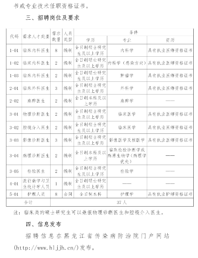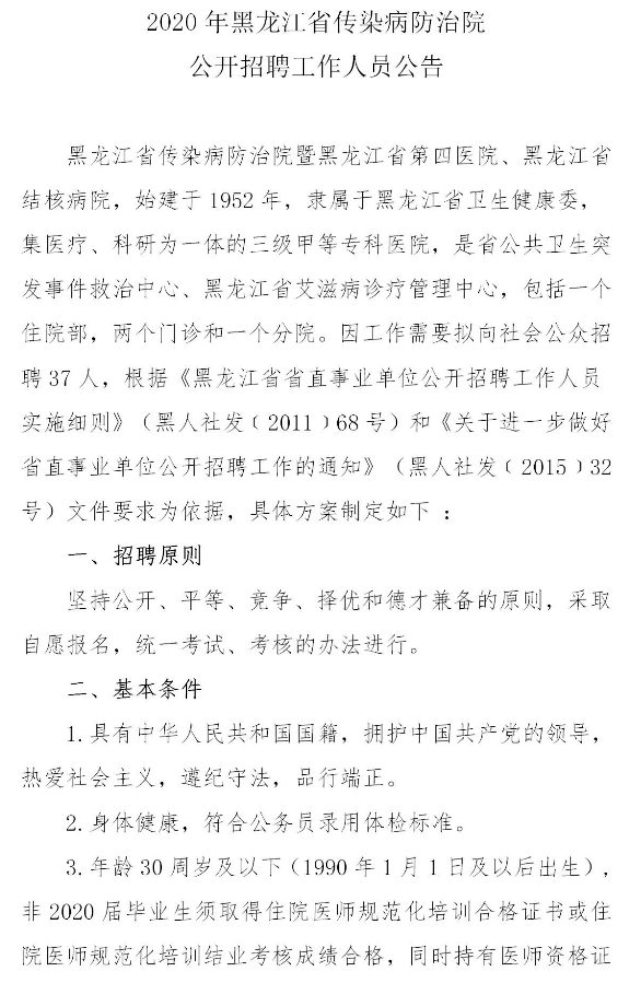 2020黑龍江省傳染病防治院招聘公告【招37人】