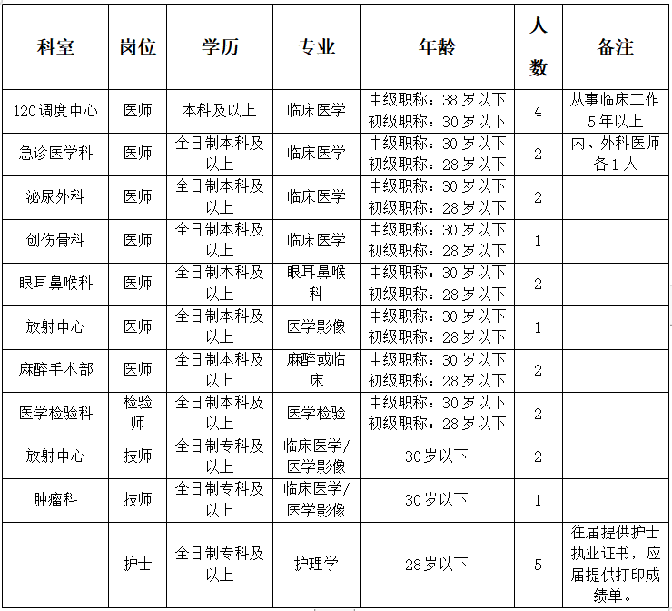 因業(yè)務(wù)發(fā)展需要,為適應(yīng)醫(yī)院發(fā)展形勢,緩解人才需求,進(jìn)一步做好人才儲備,我院面向社會招聘相關(guān)醫(yī)療衛(wèi)生人才若干名?,F(xiàn)將有關(guān)事項公告如下:
