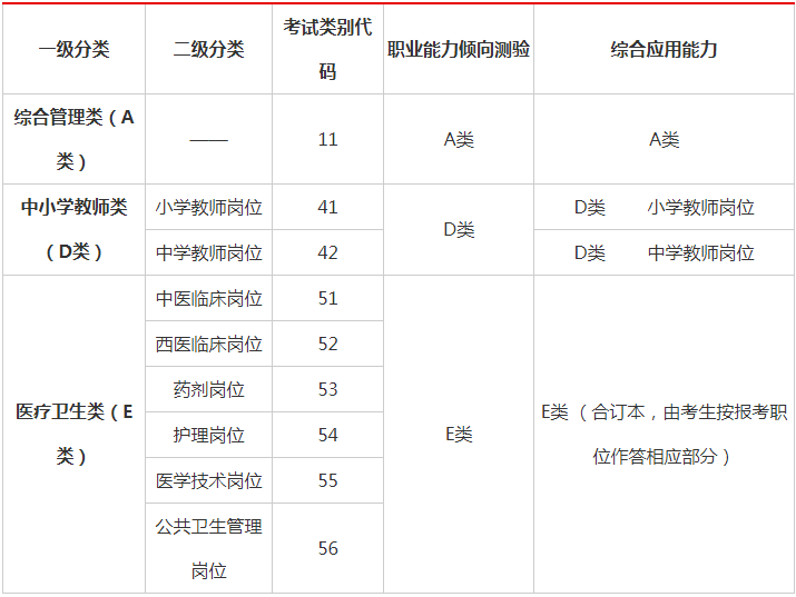 綜合管理類、中小學(xué)教師類、醫(yī)療衛(wèi)生類《職業(yè)能力傾向測(cè)驗(yàn)》和《綜合應(yīng)用能力》滿分均為150分,筆試總分300分。衛(wèi)生類綜合應(yīng)用能力為合訂本,由考生按報(bào)考職位作答相應(yīng)部分。