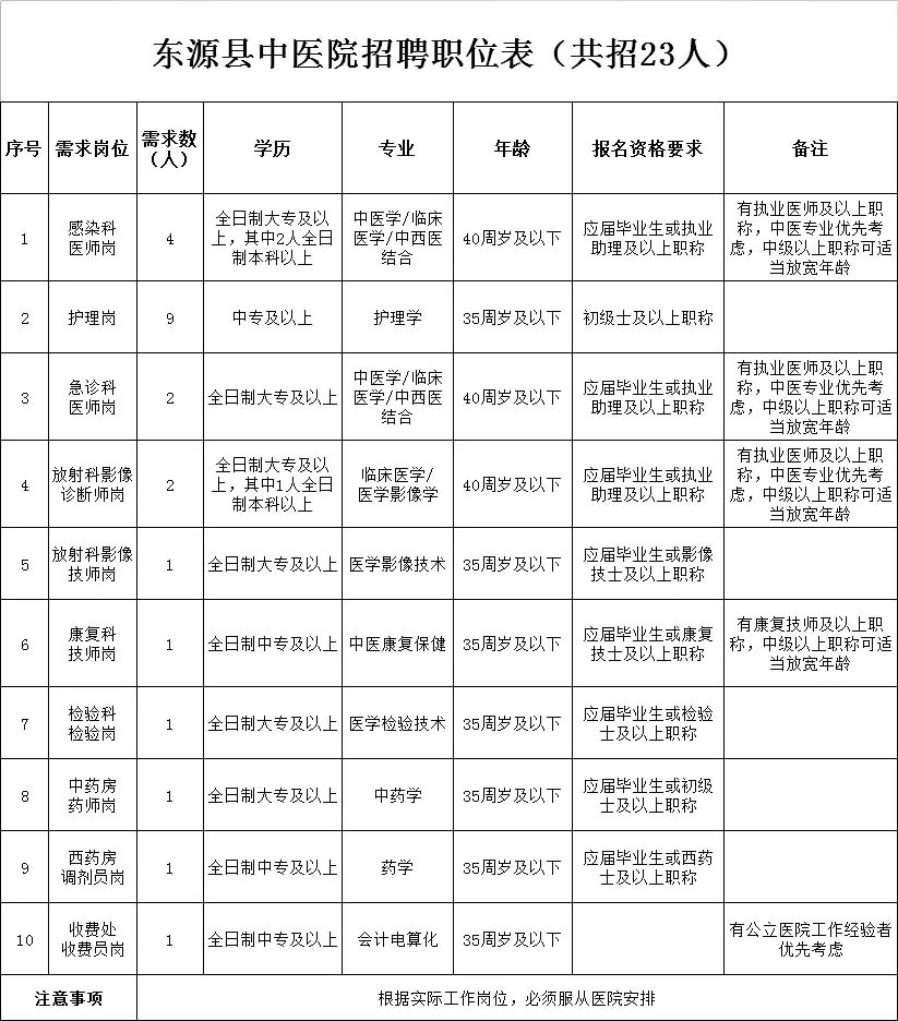 原標題:東源縣中醫(yī)院招聘公告(招23人)