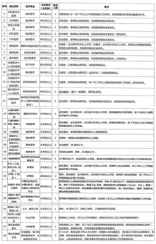 因醫(yī)院業(yè)務(wù)發(fā)展需要,現(xiàn)面向社會(huì)各界和全國(guó)各高等醫(yī)學(xué)院校誠(chéng)招英才。竭誠(chéng)歡迎各位英才和畢業(yè)生加入梅州市婦女兒童醫(yī)院大家庭,攜手同行,共創(chuàng)未來!