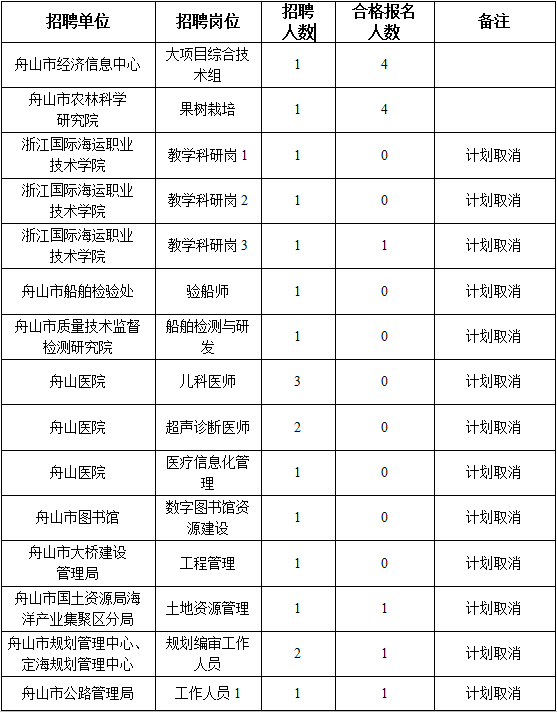 原標(biāo)題:關(guān)于公布浙江舟山群島新區(qū)人才儲備中心公開招聘高層次專業(yè)人才延長報名期限的崗位報名情況及部分崗位計劃取消的通知