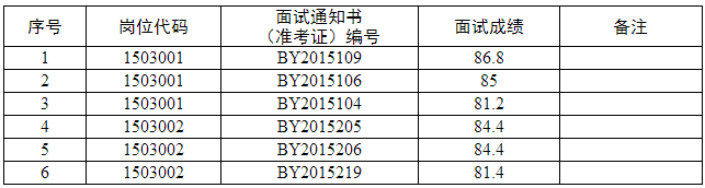 一、根據(jù)《公告》規(guī)定,按照招聘計(jì)劃數(shù)與面試成績從到低分1:3的比例確定筆試對(duì)象,根據(jù)面試結(jié)果,確定以下考生進(jìn)入筆試。
