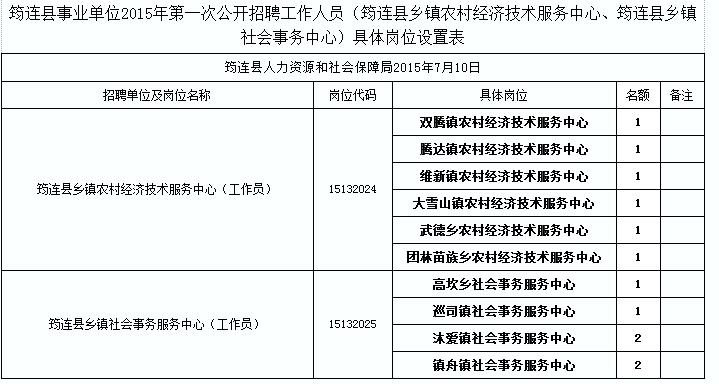 2015四川筠連縣事業(yè)單位第一次招聘具體崗位設(shè)置表