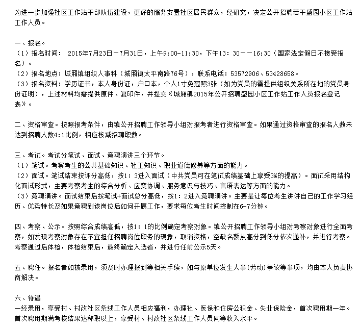 原標題:城廂鎮(zhèn)2015年公開招聘盛園小區(qū)工作站工作人員簡章
