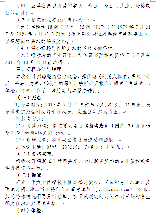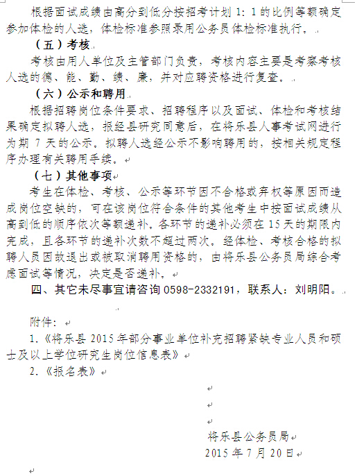 2015福建將樂(lè)縣事業(yè)單位補(bǔ)充招聘緊缺專業(yè)人才和碩士及以上學(xué)位研究生公告【招35人】