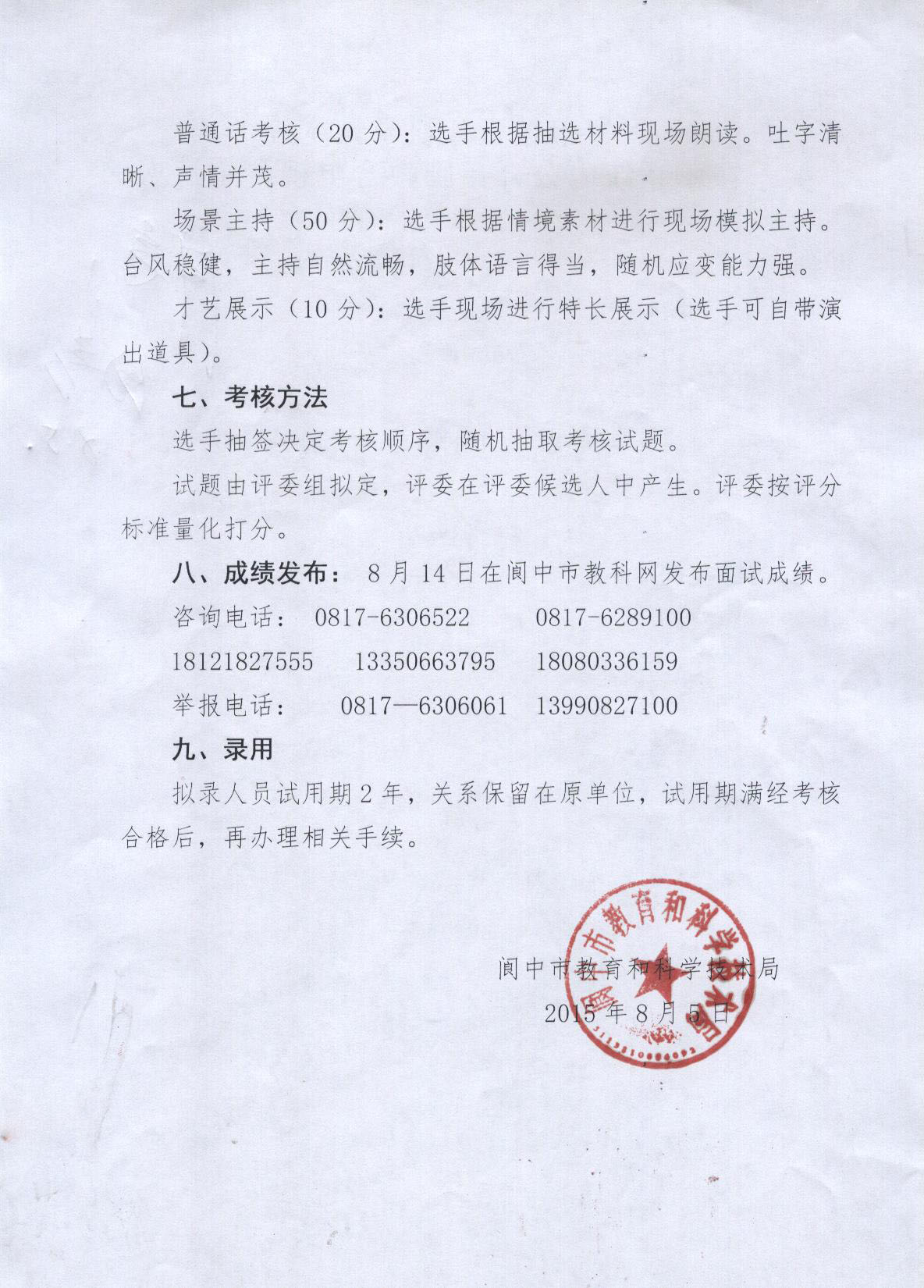 2015四川閬中市教育和科學(xué)技術(shù)局本系統(tǒng)內(nèi)招聘教育電視臺主持人2人公告