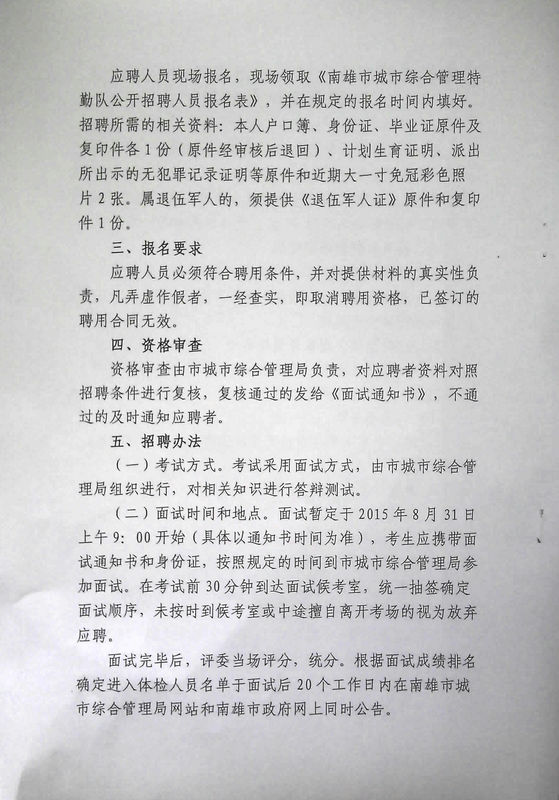 2015廣東南雄市城市綜合管理局招聘城市綜合管理特勤隊(duì)隊(duì)員30人公告