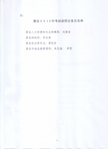 2015安徽蕭縣公務(wù)員考試錄用通知