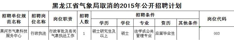 原標(biāo)題:黑龍江省氣象局關(guān)于取消黑河市氣象科技服務(wù)中心公開招聘工作人員崗位的通知