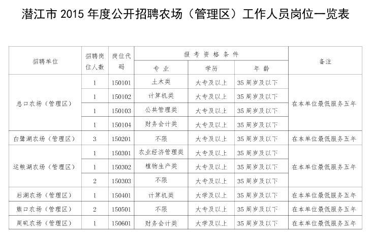 2015湖北潛江市農(nóng)場(管理區(qū))招聘15人公告【招15人】