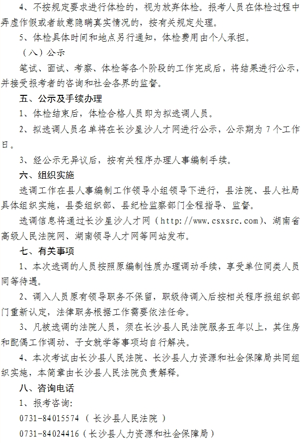 2015湖南長沙縣人民法院選調(diào)5人公告