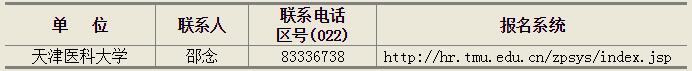 應(yīng)聘人員請(qǐng)登陸天津醫(yī)科大學(xué)網(wǎng)站(www.tmu.edu.cn)“二?一六年公開(kāi)招聘”專欄,進(jìn)入指定報(bào)名系統(tǒng),按照系統(tǒng)提示提交報(bào)名材料。具體聯(lián)系方式如下: